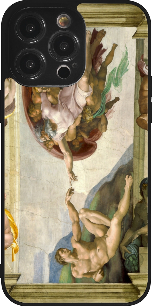 Coque iPhone 14 Pro Max - Silicone rigide noir Tableau art - La Création d’Adam - Michel-Ange