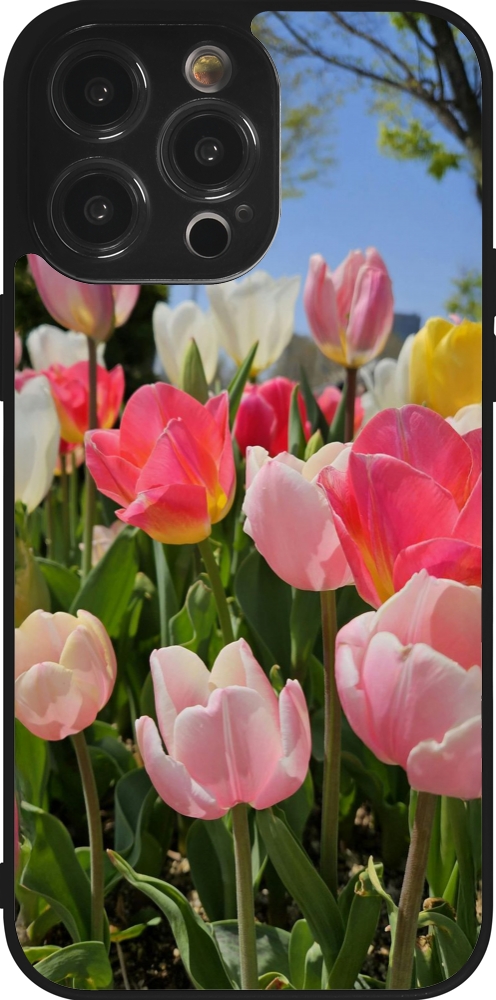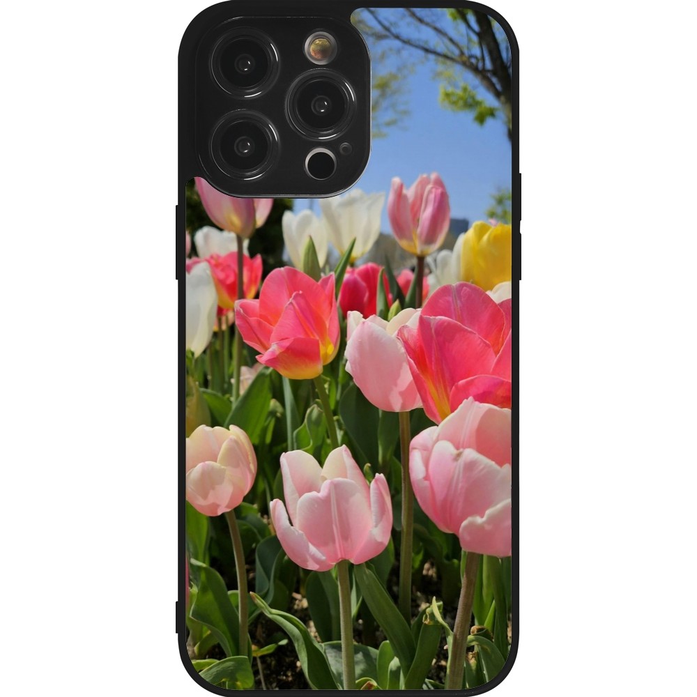 Coque iPhone 14 Pro Max - Silicone rigide noir Tulips Spring 2026