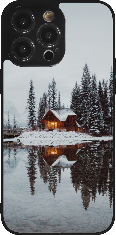 Coque iPhone 14 Pro Max - Silicone rigide noir Winter 25 Winter house forest afternoon