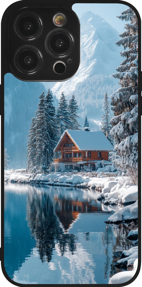 Coque iPhone 14 Pro Max - Silicone rigide noir Winter 25 Winter house forest day