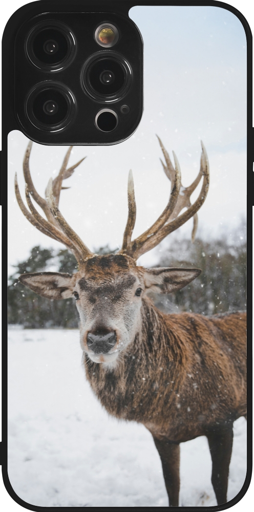 Coque iPhone 14 Pro Max - Silicone rigide noir Winter 25 Winter reindeer