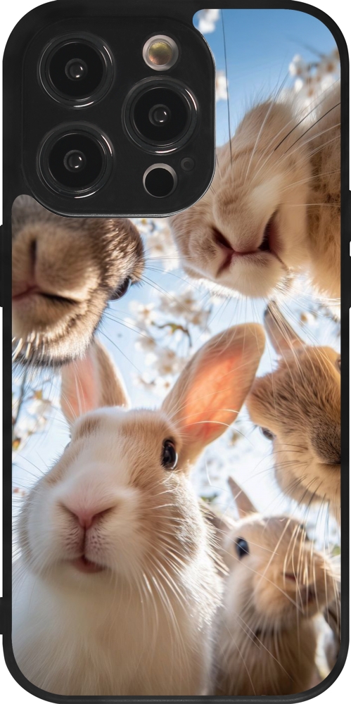 Coque iPhone 14 Pro - Silicone rigide noir Easter 2026 Rabbits