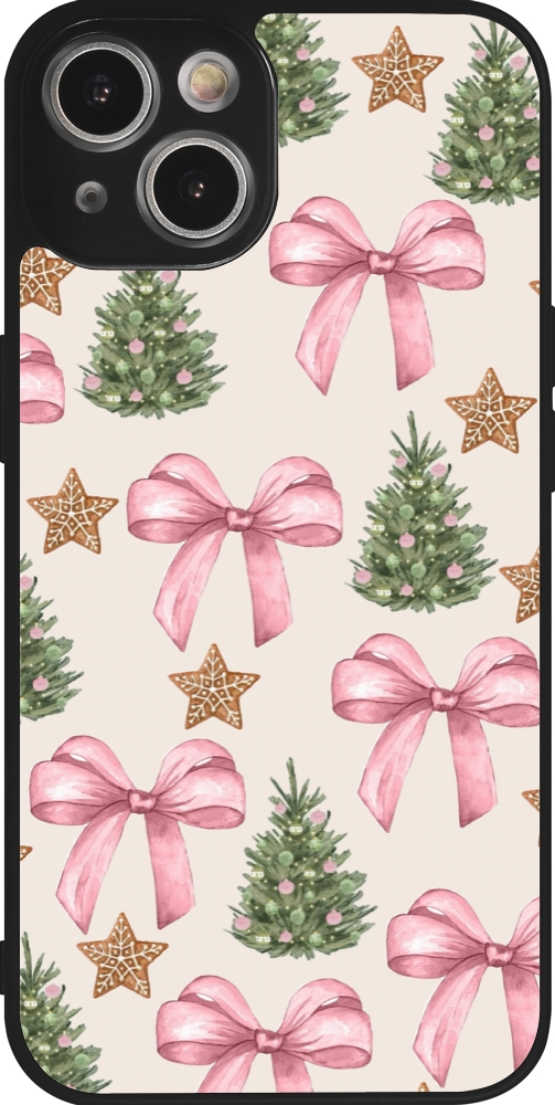 Coque iPhone 14 - Silicone rigide noir Christmas 25 Vintage Ribbons