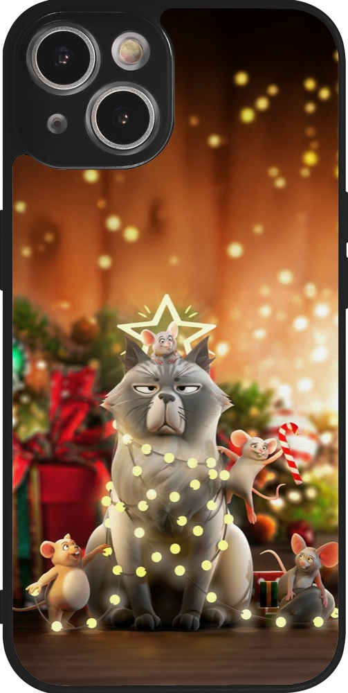 Coque iPhone 14 - Silicone rigide noir Christmas 25 Xmas Cat