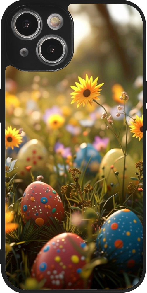 Coque iPhone 14 - Silicone rigide noir Easter 2026 Decorated eggs