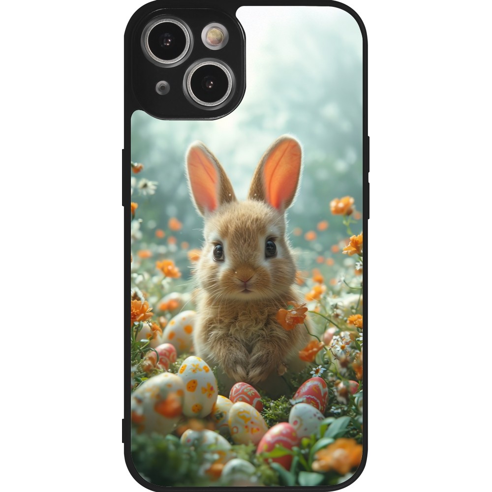Coque iPhone 14 - Silicone rigide noir Easter 2026 Rabbit in the garden