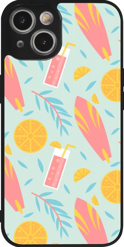 Coque iPhone 14 - Silicone rigide noir Summer 2025 Pattern citron