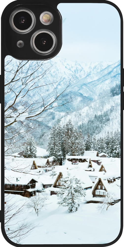 Coque iPhone 14 - Silicone rigide noir Winter 25 Winter snowy landscape