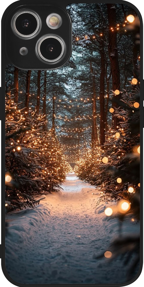 Coque iPhone 14 - Silicone rigide noir Winter 25 Winter snowy road