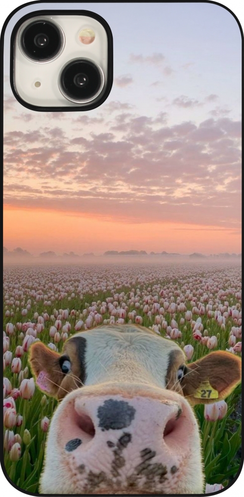 Coque iPhone 15 Plus - Cow with tulips Spring 2026