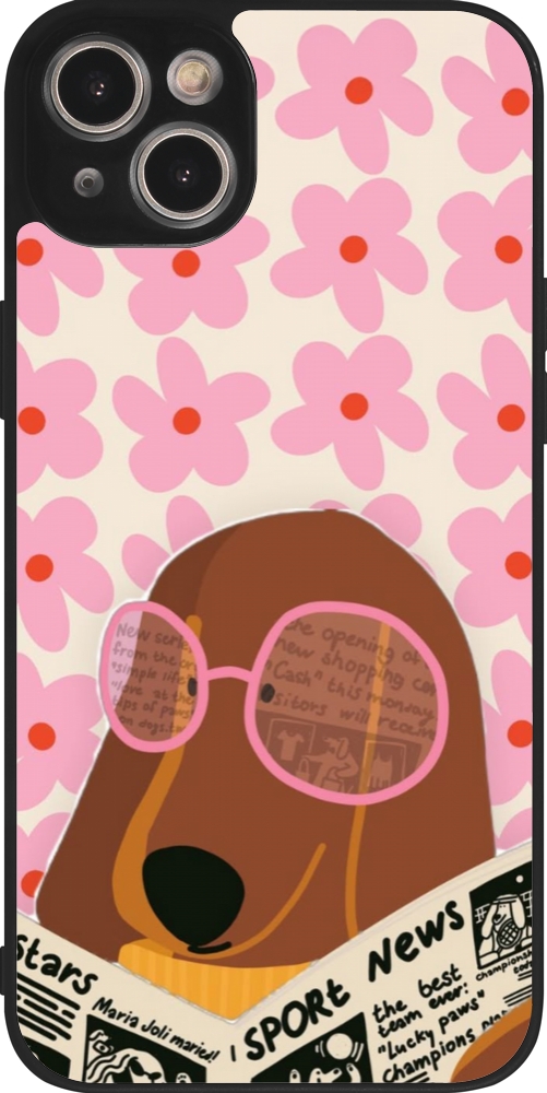 Coque iPhone 15 Plus - Silicone rigide noir Dog with newspaper Spring 2026