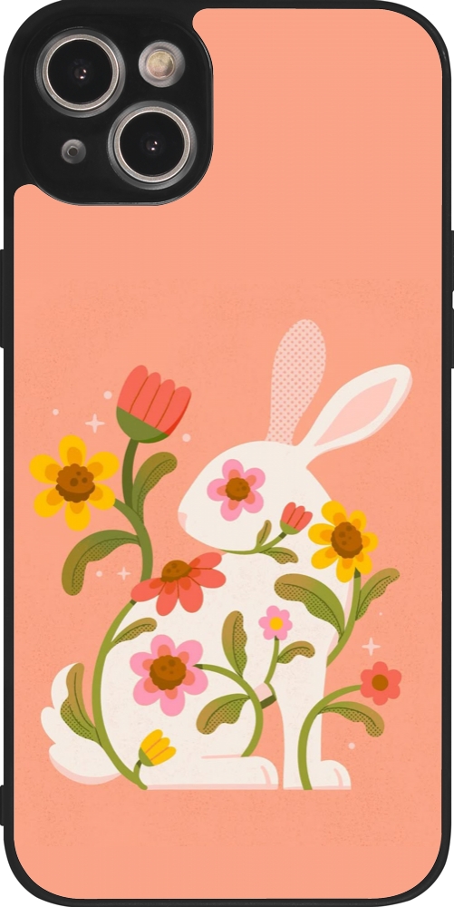 Coque iPhone 15 Plus - Silicone rigide noir Easter 2026 Rabbit collage