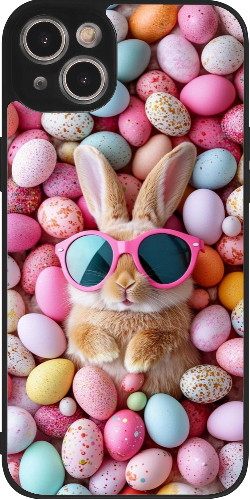 Coque iPhone 15 Plus - Silicone rigide noir Easter 2026 Rabbit fun