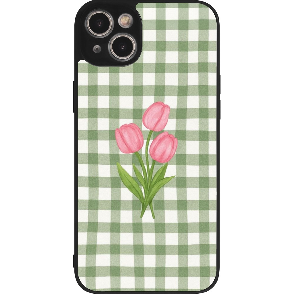 Coque iPhone 15 Plus - Silicone rigide noir Green vichy tulips Spring 2026
