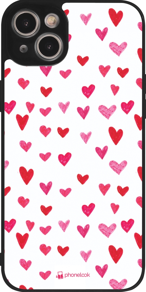 Coque iPhone 15 Plus - Silicone rigide noir Valentine 2022 Many pink hearts