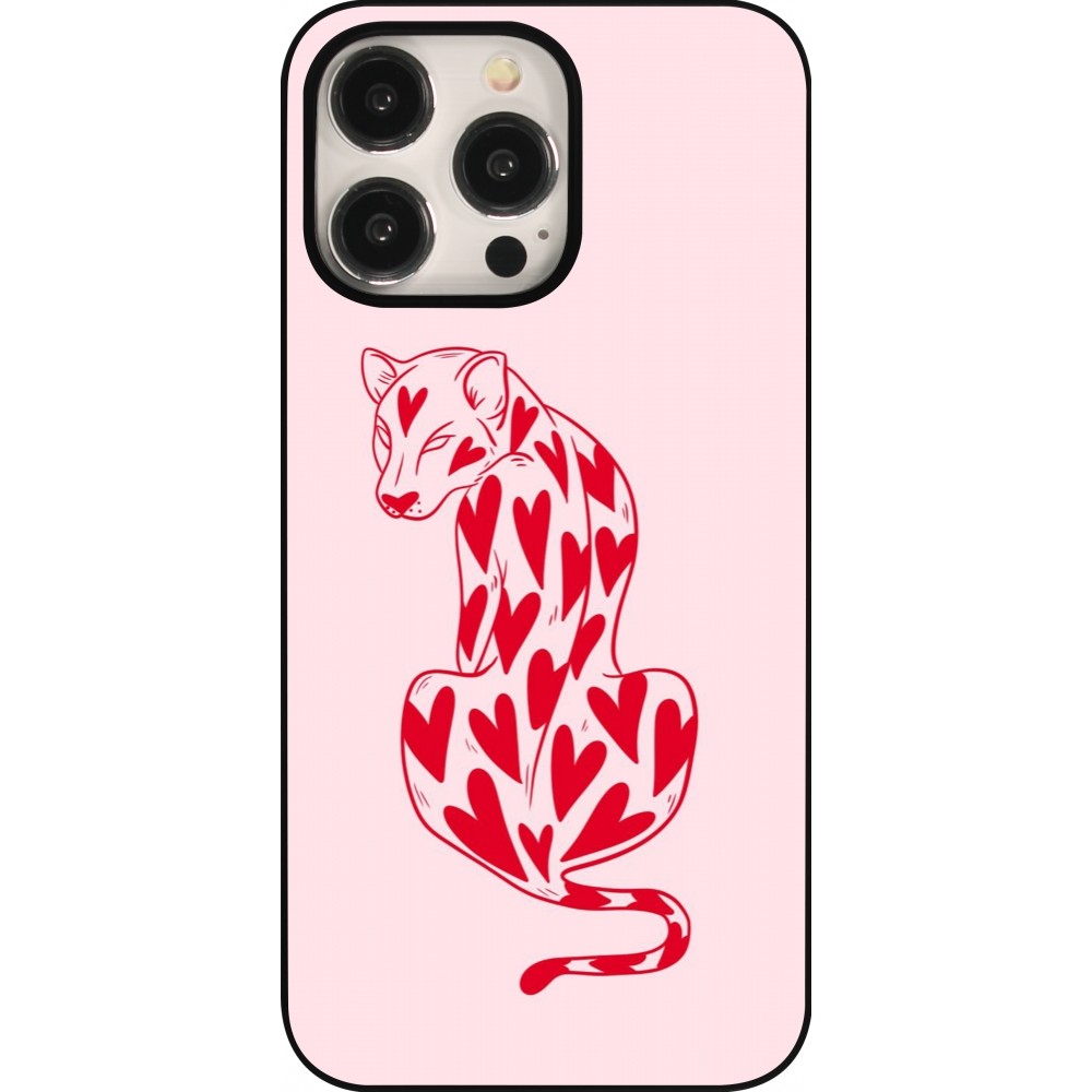 Coque iPhone 15 Pro Max - Leopard with hearts 2026