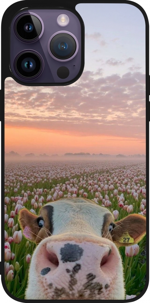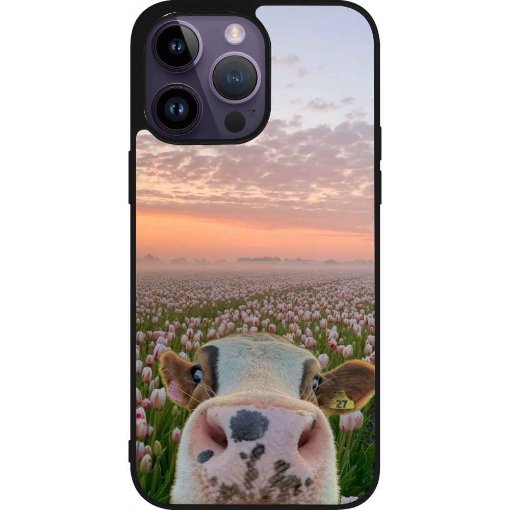 Coque iPhone 15 Pro Max - Silicone rigide noir Cow with tulips 2026