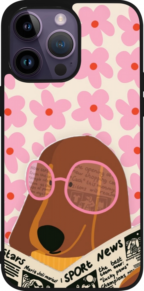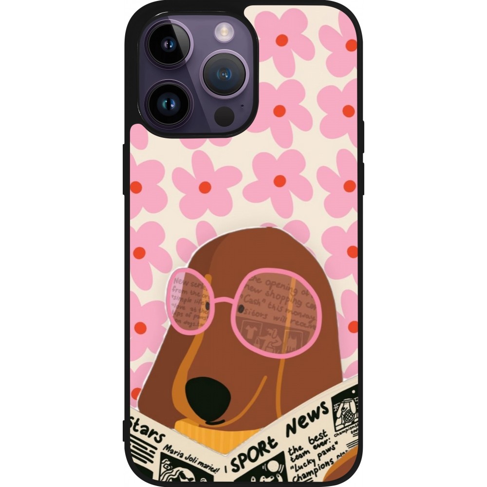 Coque iPhone 15 Pro Max - Silicone rigide noir Dog with newspaper 2026