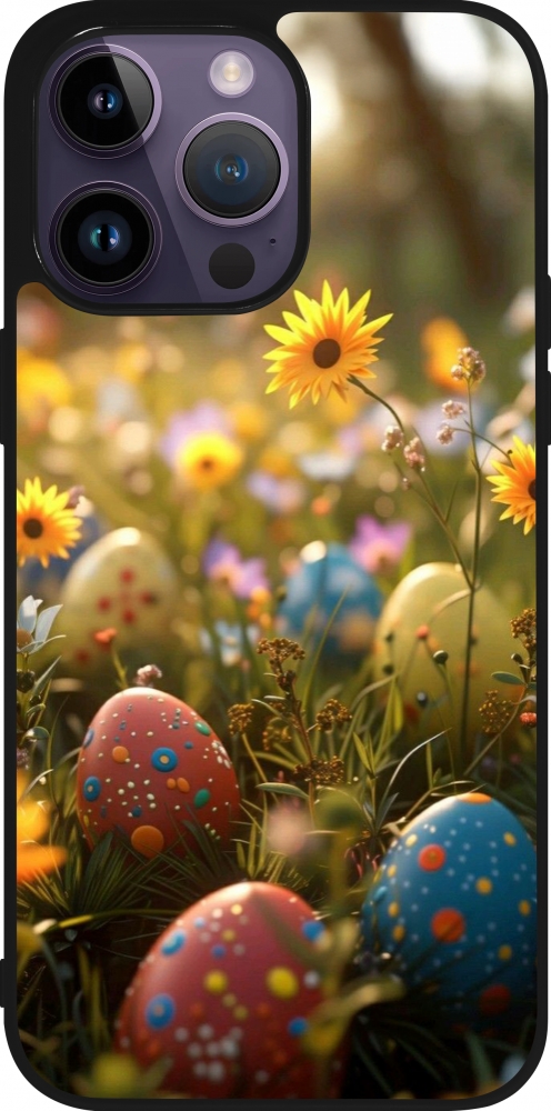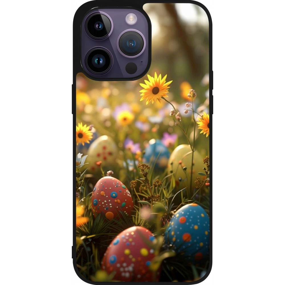 Coque iPhone 15 Pro Max - Silicone rigide noir Easter 2026 Decorated eggs