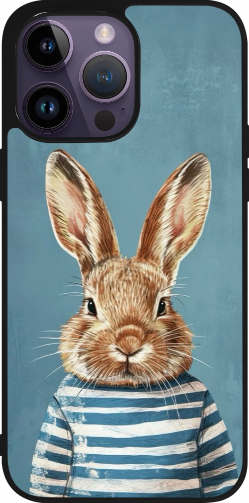 Coque iPhone 15 Pro Max - Silicone rigide noir Easter 2026 Rabbit navy
