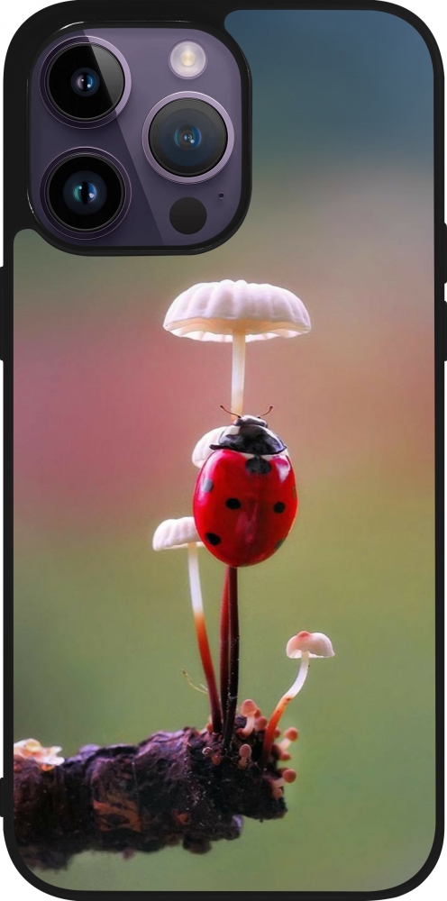 Coque iPhone 15 Pro Max - Silicone rigide noir Ladybird on a mushroom 2026