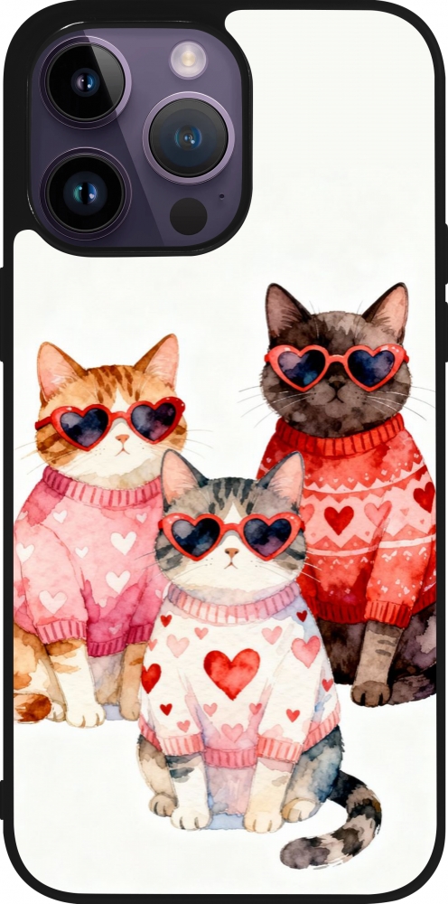 Coque iPhone 15 Pro Max - Silicone rigide noir Saint Valentines Day 26 Cat Love