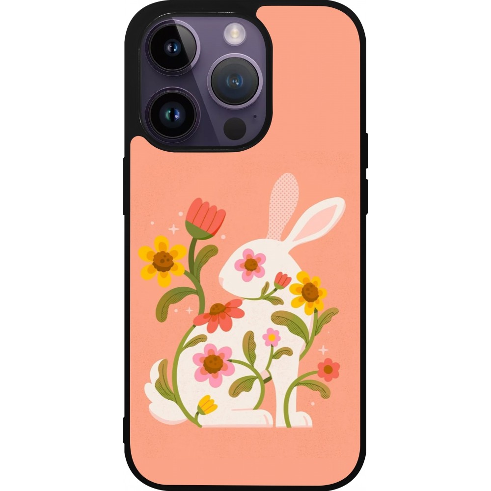Coque iPhone 15 Pro - Silicone rigide noir Easter 2026 Rabbit collage