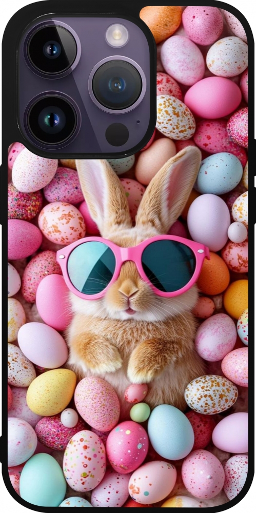Coque iPhone 15 Pro - Silicone rigide noir Easter 2026 Rabbit fun