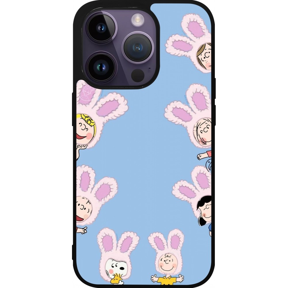 Coque iPhone 15 Pro - Silicone rigide noir Easter 2026 Snoopy