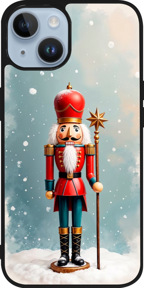 Coque iPhone 15 - Silicone rigide noir Christmas 25 Nutcracker Snow