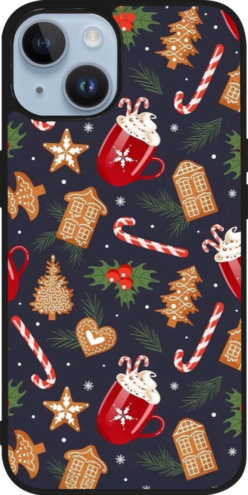 Coque iPhone 15 - Silicone rigide noir Christmas 25 Pattern Gingerbread House