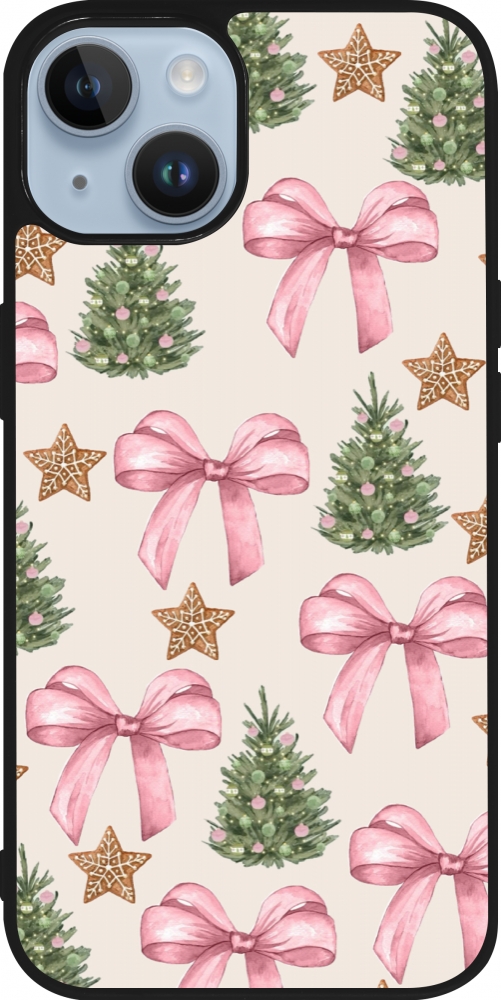 Coque iPhone 15 - Silicone rigide noir Christmas 25 Vintage Ribbons