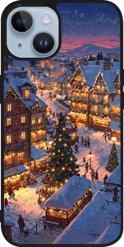Coque iPhone 15 - Silicone rigide noir Christmas 25 Xmas Village
