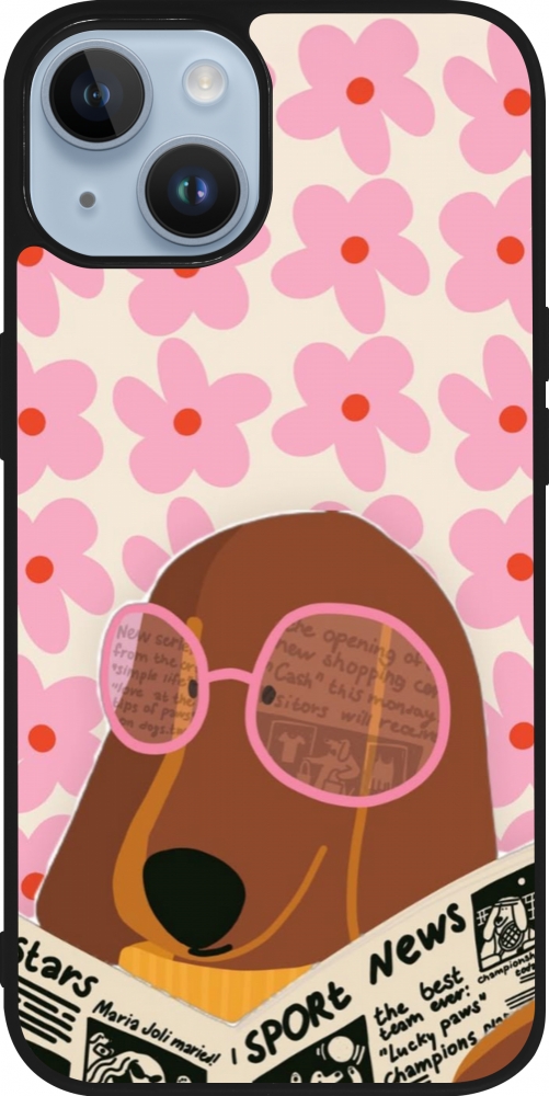 Coque iPhone 15 - Silicone rigide noir Dog with newspaper 2026