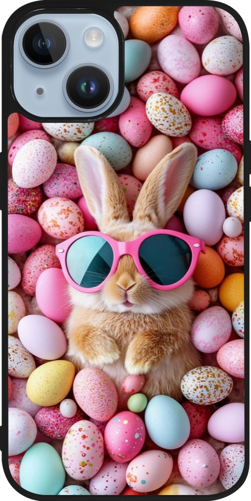 Coque iPhone 15 - Silicone rigide noir Easter 2026 Rabbit fun