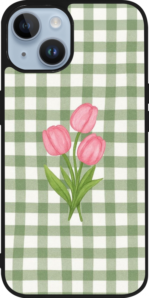 Coque iPhone 15 - Silicone rigide noir Green vichy tulips 2026