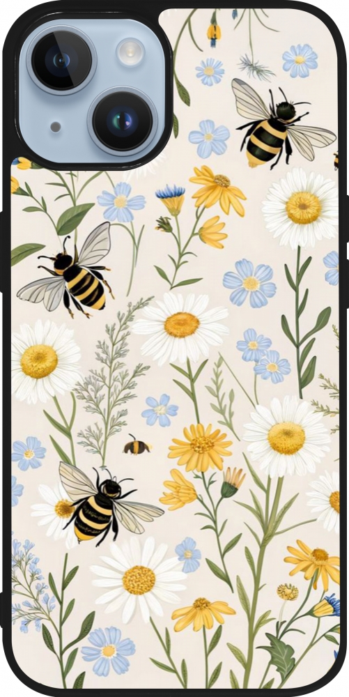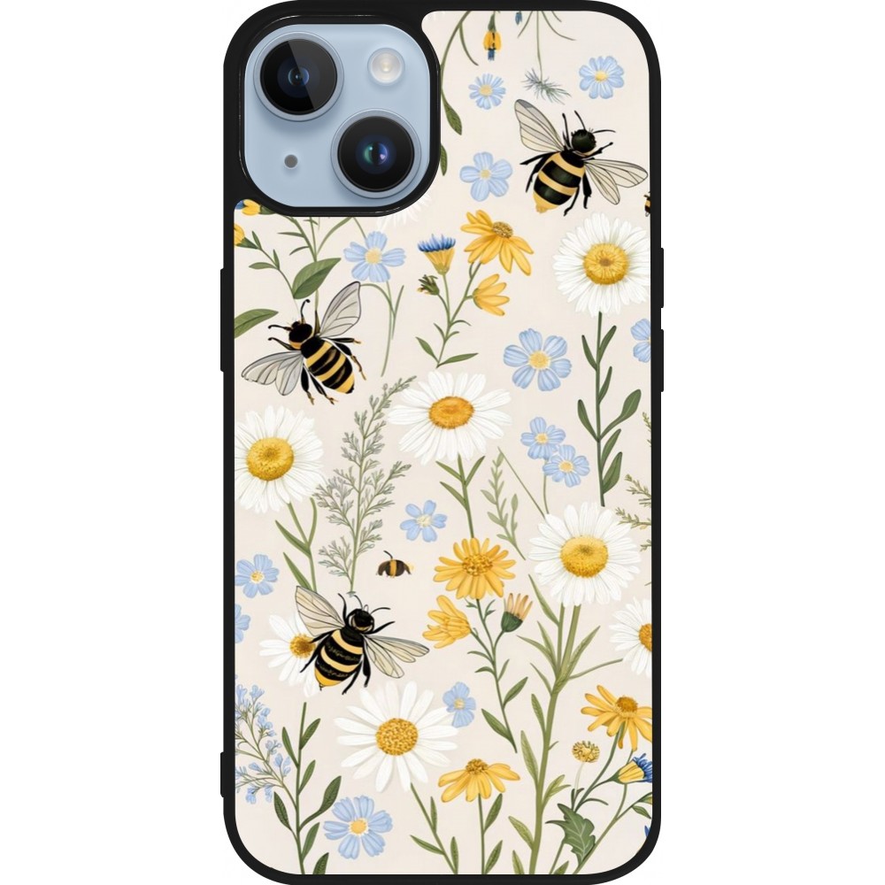Coque iPhone 15 - Silicone rigide noir Pattern bees 2026