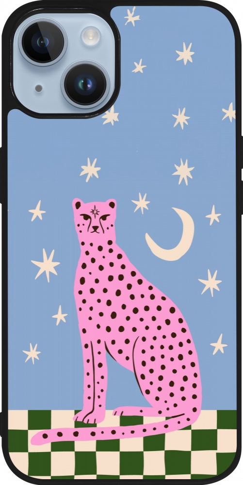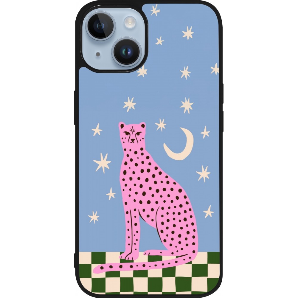 Coque iPhone 15 - Silicone rigide noir Pink leopard with stars 2026