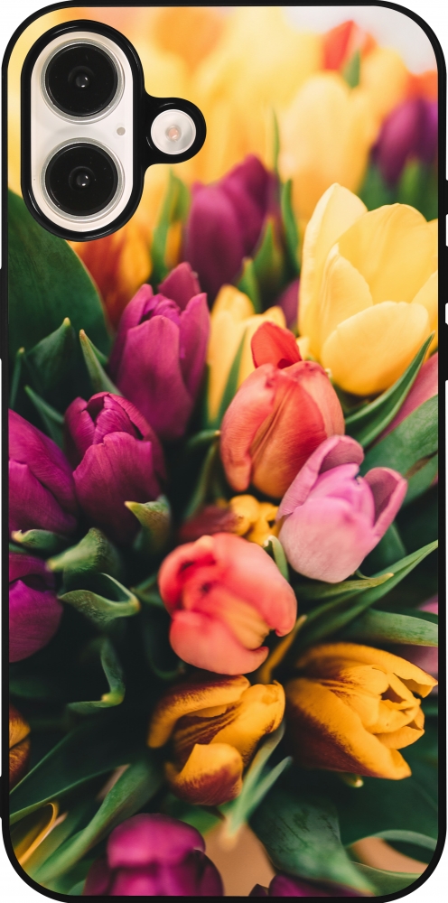 Coque iPhone 16 Plus - Silicone rigide noir Bouquet of tulips Spring 2026