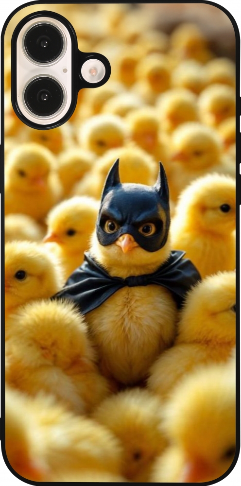Coque iPhone 16 Plus - Silicone rigide noir Easter 2026 Chicken Batman