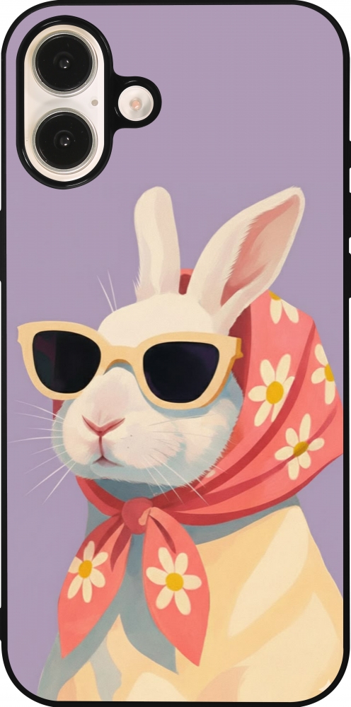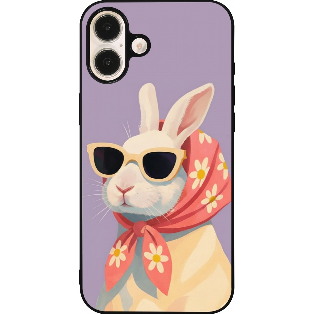 Coque iPhone 16 Plus - Silicone rigide noir Easter 2026 Rabbit with scarf