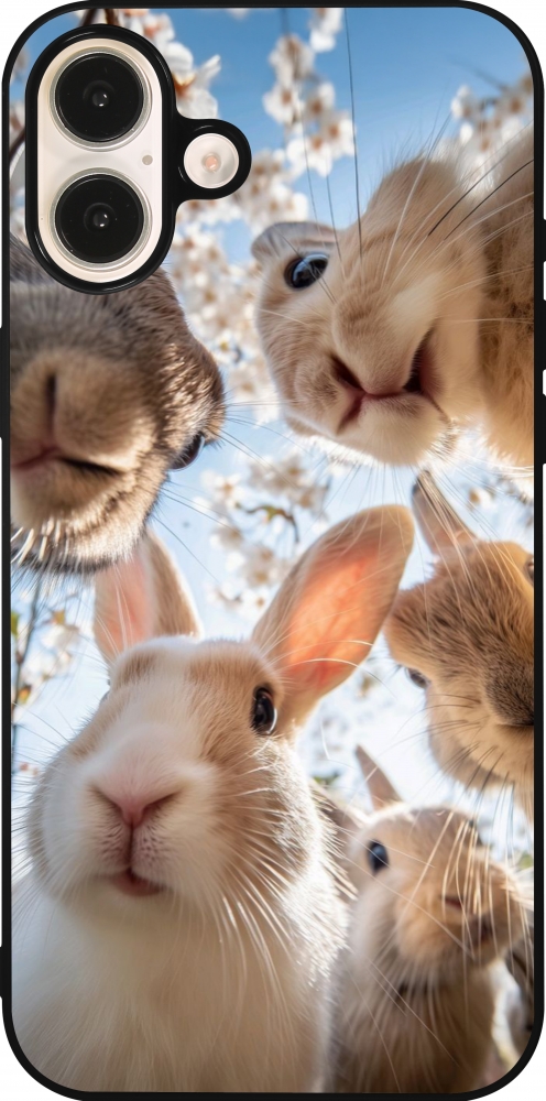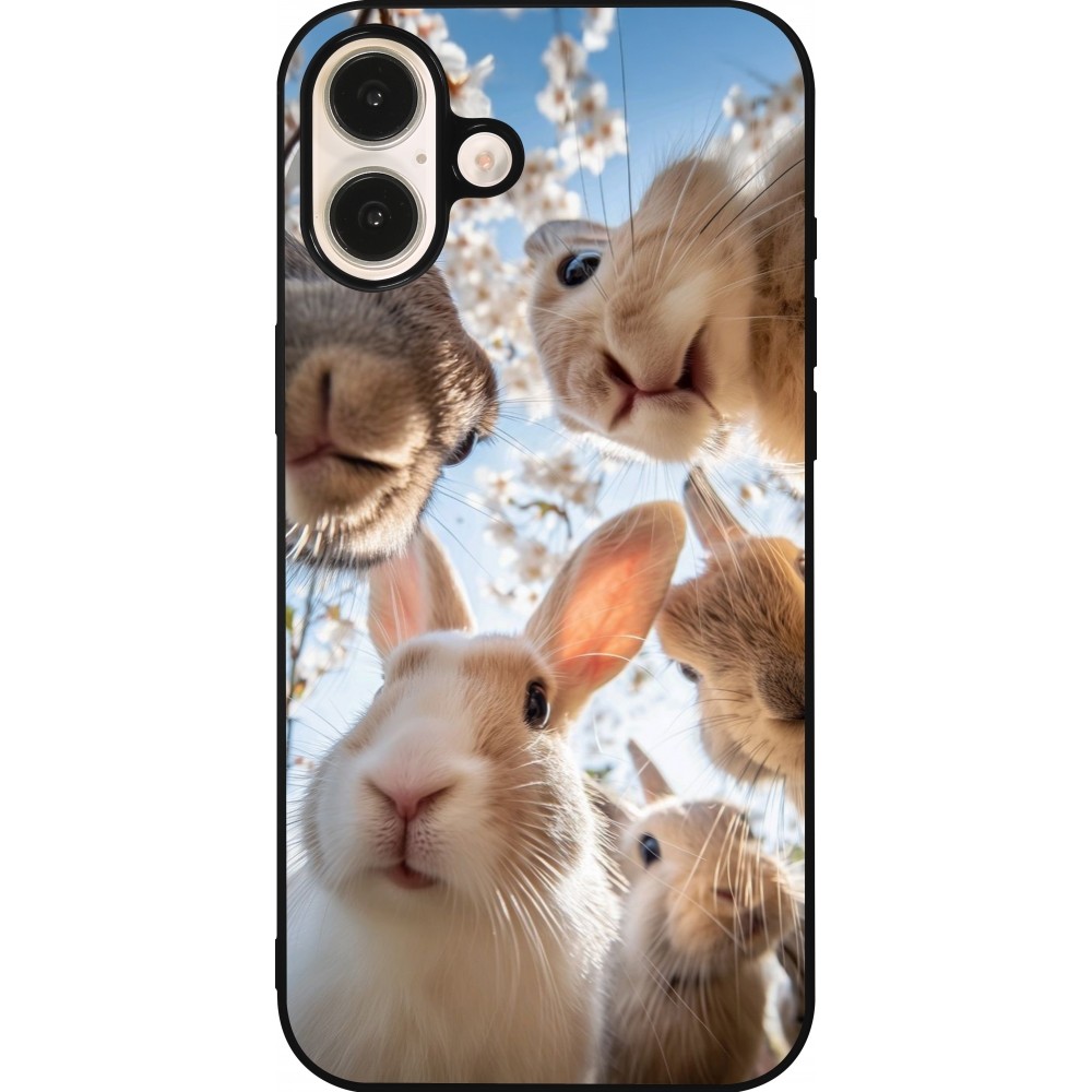 Coque iPhone 16 Plus - Silicone rigide noir Easter 2026 Rabbits