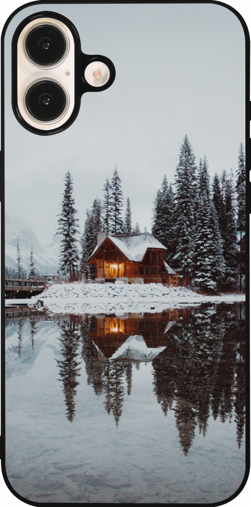 Coque iPhone 16 Plus - Silicone rigide noir Winter 25 Winter house forest afternoon