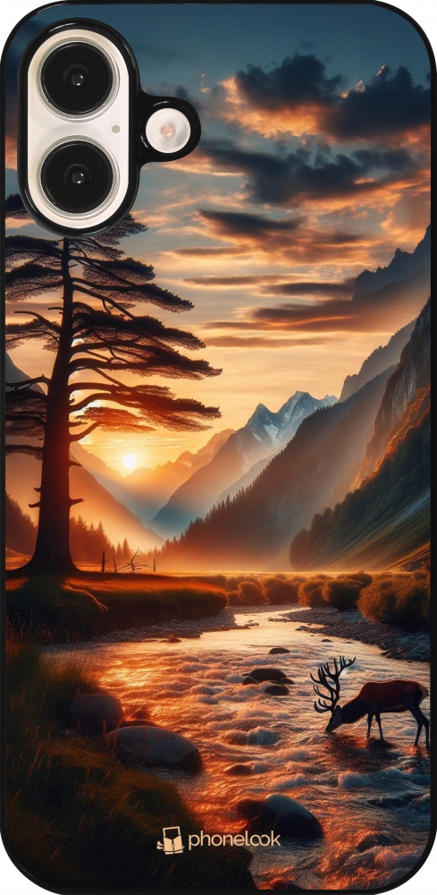 Coque iPhone 16 Plus - Valley Sunset Deer Tree