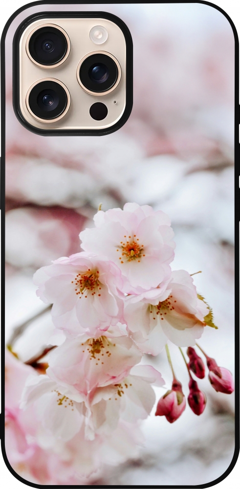 Coque iPhone 16 Pro Max - Silicone rigide noir Cherry tree 2026