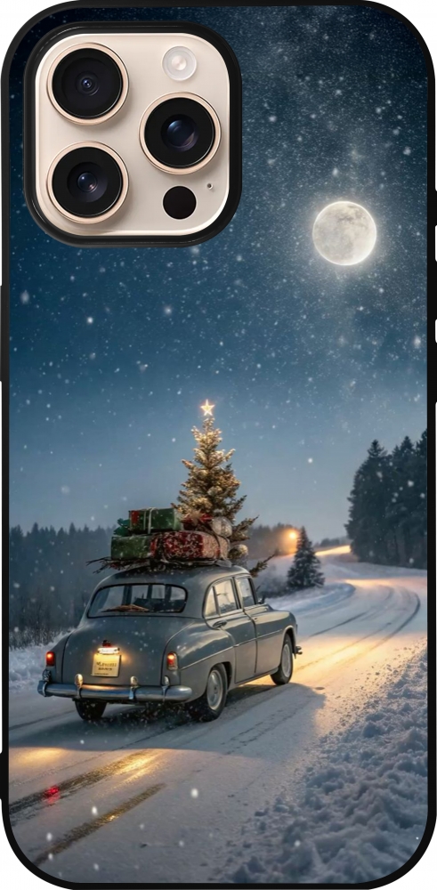 Coque iPhone 16 Pro Max - Silicone rigide noir Christmas 25 Car with Tree Xmas