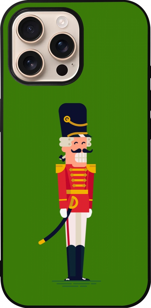 Coque iPhone 16 Pro Max - Silicone rigide noir Christmas 25 Nutcracker Green