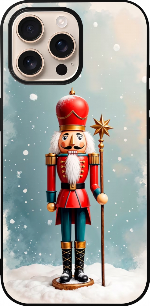 Coque iPhone 16 Pro Max - Silicone rigide noir Christmas 25 Nutcracker Snow