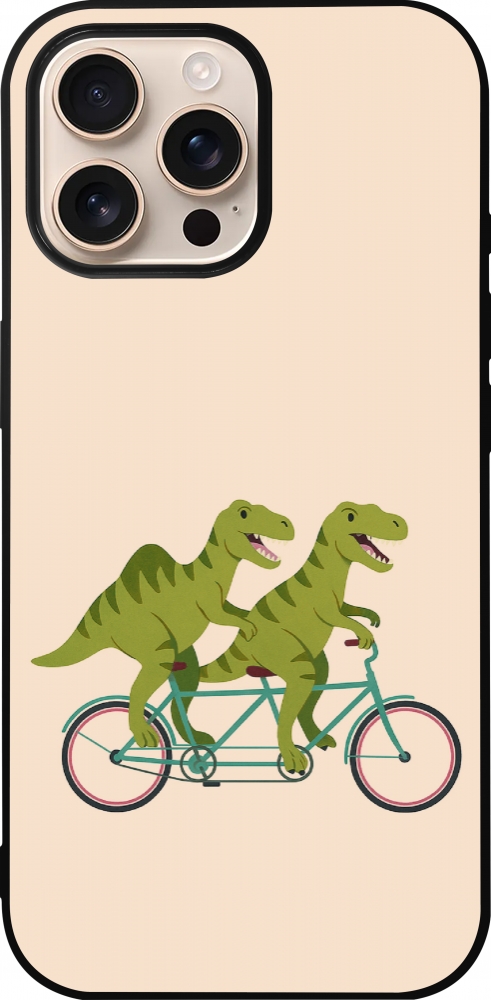 Coque iPhone 16 Pro Max - Silicone rigide noir Dinosaurs on bikes 2026