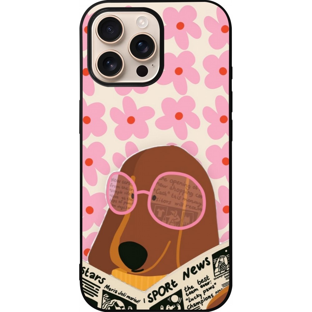 Coque iPhone 16 Pro Max - Silicone rigide noir Dog with newspaper 2026